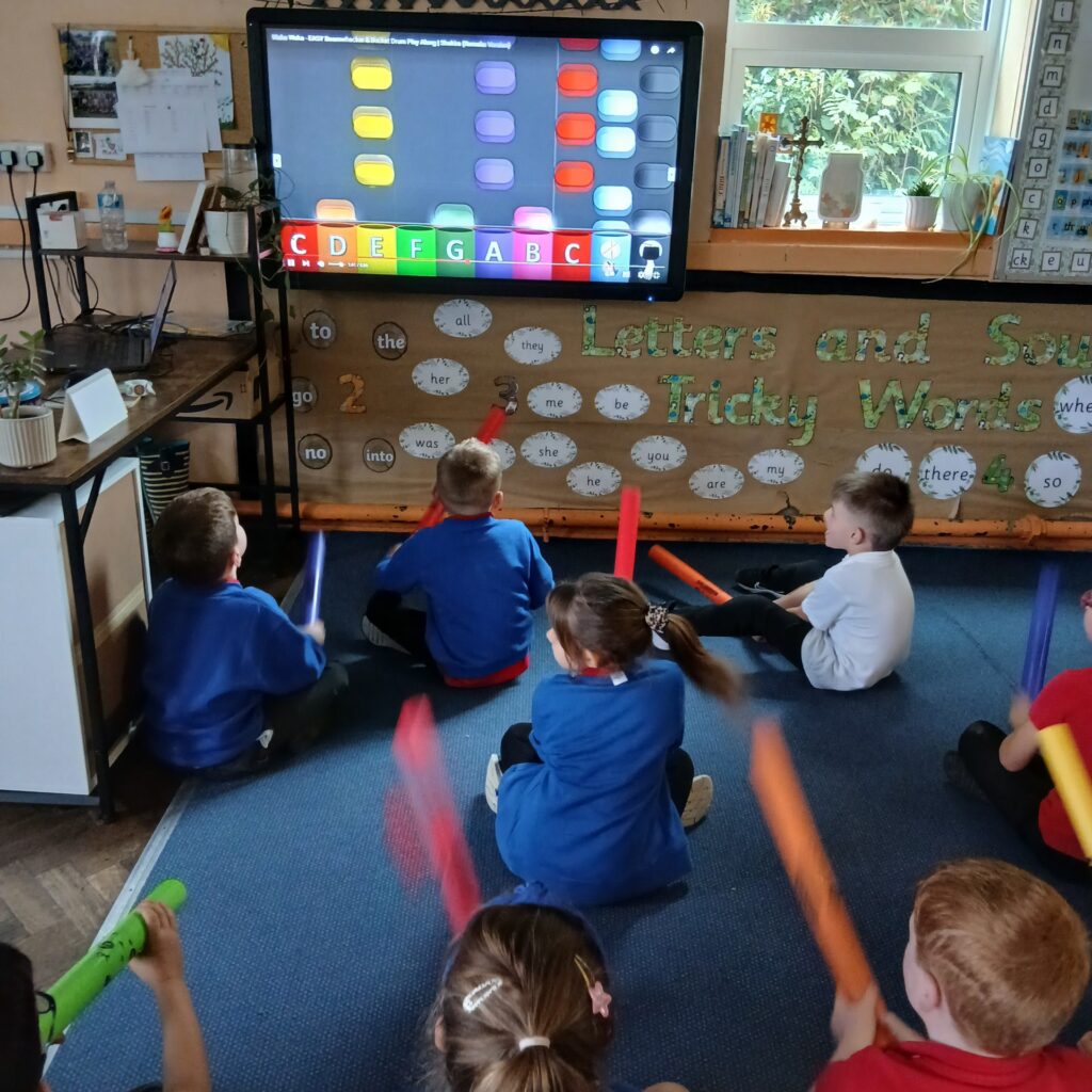 Children in year 2 have been enjoying using the boomwhackers. Boomwhackers can improve cognitive skills such as focus, concentration, and memory. Keeping track of different notes, patterns, and melodies strengthens the childrens mental agility and enhances their overall cognitive abilities. They are also really good fun and sounded great!